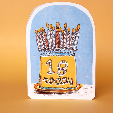 Welcome them to adulthood with this fabulous hand-illustrated birthday card, featuring a colourful cake, and plenty of candles. Perfect for celebrating the amazing milestone that is turning 18!