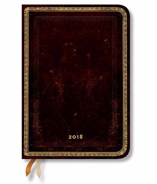 This diary is another from the renaissance-style collection, inspired by the gold tooling craft that made it's way into European culture after trade routes with the East were established. The diary has a week-at-a-time view and includes other features such as a mini address book, extra note pages and a memento pouch.Â
