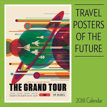 The imaginative illustrations in this 2018 wall calendar are inspired by sci-fi and vintage travel posters. Each month features a poster adverisiting a different planet in the solar system, in bold colours and unique style. Perfect for aspiring astronauts and cosmic travellers.