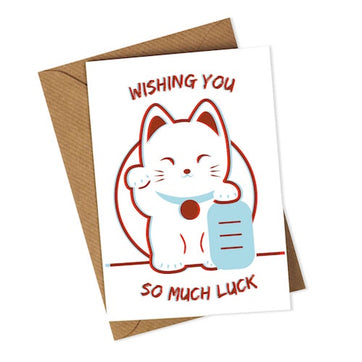 Send good luck wishes with this card featuring a Japanese 'Maneki-neko' (lucky cat), a figure believed to bring good luck to it's owner!