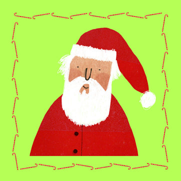 Ho Ho Ho, a simple happy Santa. Pack of six, cheerful Santa charity Christmas cards in aid of the Sick Kids Foundation.