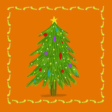 Oh Christhmas tree, oh christmas tree. Pack of six, bright and colourful Christmas Tree charity Christmas cards in aid of the Sick Kids Foundation.