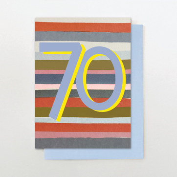 Celebrate their 70th birthday with this fabulous birthday card, featuring a funky striped background and bold lettering.