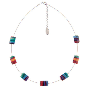Each bead in this Abstract Spaced Necklace, is a hand-painted shell bead by artisans from the Phillipines, and is designed by Welsh jeweller Carrie Elspeth. It is approximately 43cm (17") long, with a 5cm (2") extension, and is complete with a silver-plated spring clasp.