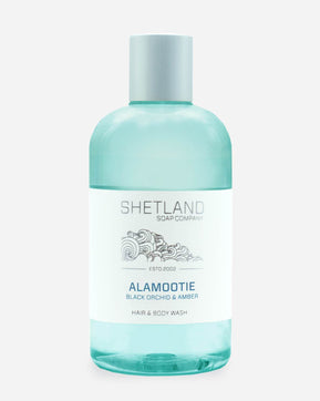 'Alamootie' is the Shetland name for a storm petrel - the deep blue colour and rich scent of orchid and amber in this hair and body wash is inspired by the natural habitat of this handsome bird. Each bottle is hand mixed, hand poured and hand labelled for the perfect finish. Shetland Soap Company works alongside people with a learning disability or autism to make high-quality products inspired by the Scottish isles.