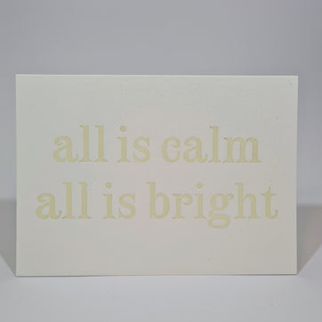 the design is printed on 270gsm alabaster card, and printed with silver ink, using a vintage Nineteenth-Century font. Our 'All Is Calm, All Is Bright' card is a simple but beautiful design. We love the sentiment and the shimmer of the silver ampersand.