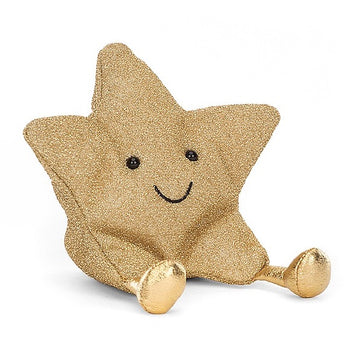 This Jellycat Amuseables Star is sure to be the leading light of your Christmas decorations. With its shiny gold boots, glimmering gold fur and huggable arms, this bright star will light up an Festive scene.