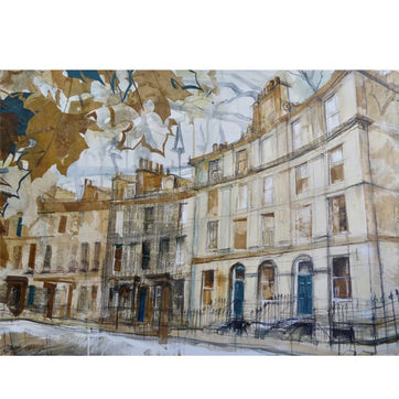This beautiful card from Edinburgh artist Lucy Jones features an atmospheric scene on a street in Edinburgh's New Town. Blank inside.