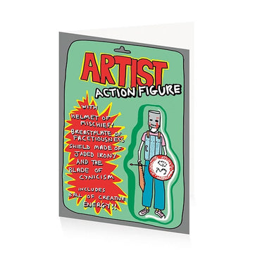 What makes up a modern artist? Well now we have a modern artist action figure to illustrate the point thanks to British artist Grayson Perry. This card is blank inside and comes with a white paper envelope.