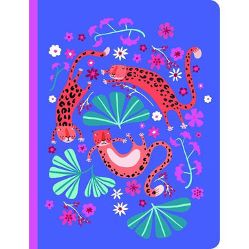 This bright, colourful notebook featuring happy leopards with leaves and flowers is perfect for school, work, or just doodling and journalling! Softbound, and with 48 lined pages, it is compact and great for carrying with you throughout the day.