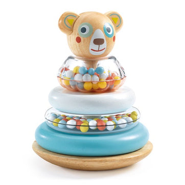 This brilliant stacking game is perfect for keeping little hands busy. It has two bead-filled rings for a satisfying rattle, and the rest is made of natural wood. To top it all off, a friendly teddy face!