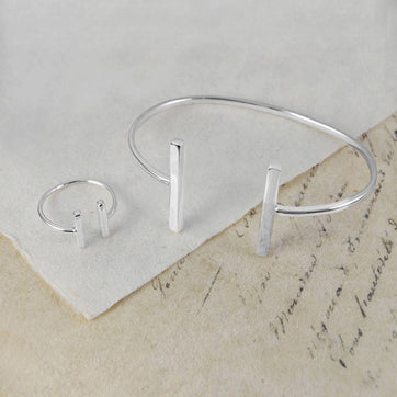 Modern, stylish and fashion-forward, this solid sterling silver bangle has an adjustable opening and double bar design. Uncomplicated, minimalist and effortlessly cool.