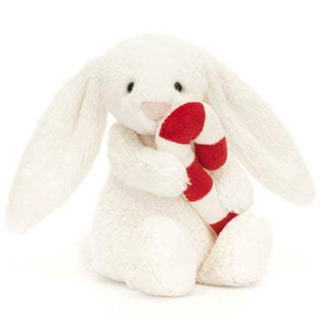 This lusciously soft Jellycat Bashful Bunny with Candy Cane has long floppy ears, a fabulously fluffy tail and snuggly paws. Holding a squidgy fur cane in brilliant cream and scarlet stripes, this bunny brings with it a flash of festive colour. This adorable Christmas helper is the perfect gift this holiday season.