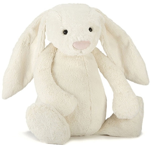 Bashful Cream Bunny Really Big is a special one with his luxurious, silky soft ears and cuddly paws! His creamy fur means he is a big fan of cream, especially on scones - he's the perfect companion for a high tea! When he's not busy grazing on sweet treats, this Jellycat loves nothing more than a big, warm hug!