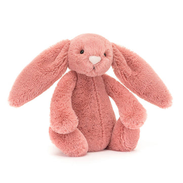 With blushing copper fur, this little love is Jellycat Bashful Sorrel Bunny, perfect for the softest of snuggles. Taking a break from hopping around floral meadows, this beautiful bunny is ready to settle down for cuddles and naps. Long, flopsy ears of the silkiest salmon-pink, a teeny button nose and the gentlest eyes, are sure to make your heart melt.