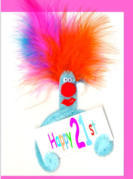 A fun and silly handmade card to bring a smile to anyone celebrating their all important 21st birthday! Made from pipe cleaners, colours may vary. Left blank for your own message.