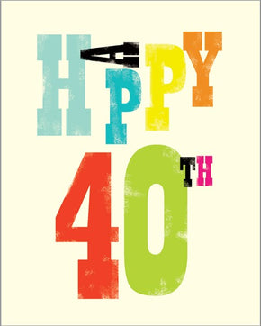 This is a bright and colourful 40th birthday card. This card has been left blank inside for a personal message and comes with a white envelope.
