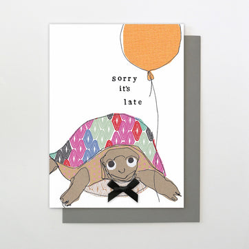 This charming tortoise is hand-finished with a black bow tie. He might be late but he's fashionable!