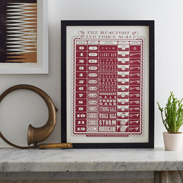 A scale devised by Sir Francis Beaufort in 1805 to measure wind speed, wave height and sea conditions. Sir Francis is buried in the church gardens of St John at Hackney, London.