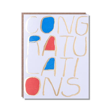 A fun congratulations card that has been hand letter pressed and finished with gold foil. This card has been left blank inside for a personal message and it comes with a brown envelope.