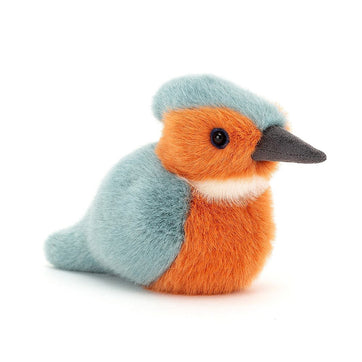 A stunning companion for patient peeps and water lovers! Birdling Kingfisher Jellycat is quite content resting on a branch eyeing up his dinner options in a nearby river! Intelligent and beautiful, with his bright orange and pastel blue hues. His beady eyes are always on watch for snacks and nuzzles!