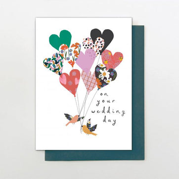 This sweet card of a pair of birds holding balloons is a beautiful way to congratulate the happy couple on their special day
