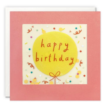 This fantastic birthday card features a colourful balloon illustration from artist Kate Mainard and is packed full of colourful confetti dots that move around when the card is shaken. As an extra bonus, this card is plastic-free and 100% recyclable!