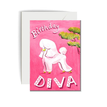 Celebrate any diva's birthday in style with this cute and colourful card. The design features a dog wearing high heels and is blank inside for your own message.