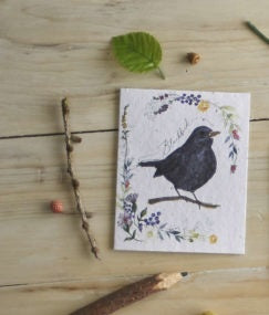 This sweet card features a lovely blackbird and flower illustration. All cards from artist and creator Hannah Marchant are made with seeds, making them plantable! Simply plant under a thin layer of compost, water, and watch the seeds germinate. This card contains wildflower seeds.