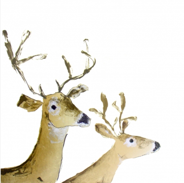 Deer friends, Sargeant and Wursley, are illustrated here by celebrated children’s artist Catherine Rayner. Printed in Edinburgh on sturdy watercolour card, it has been left blank inside for your own message and comes with an envelope ready for sending.