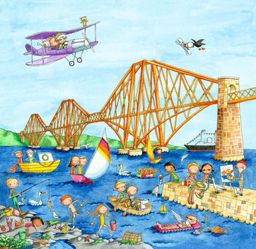 This sweet card designed by Gingerpaws features a colourful cast of characters as they take a swim in the Firth of Forth, with the iconic red Forth Bridge above them.
