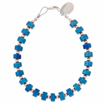 Create instant style with this Blue Infinity Bracelet from Welsh jeweller Carrie Elspeth. The bracelet is made from Indian matte beads, spaced with silver-plated contrast beads. It is approximately 19cm (7") round, and has a silver-plated spring clasp closure.