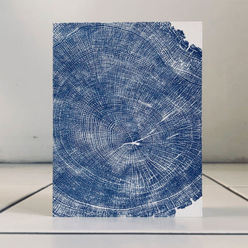 This card has been hand printed by Rhian Nicholas of The Passenger Press on an antique letterpress in her studio in Glasgow. Taking inspiration from Archive Colllections and stately homes from around the country this card is part of the Hearth and Home collection and is a print of oak tree rings. Printed in blue ink.