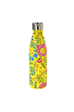 This funky bottle is practical and stylish with a colourful floral design on a sunny yellow background. The secure steel cap is ideal for taking drinks on the go.