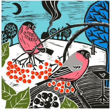 Send your season's greetings with these bold and striking Christmas cards featuring a beautiful bullfinch illustration by artist Kate Heiss.