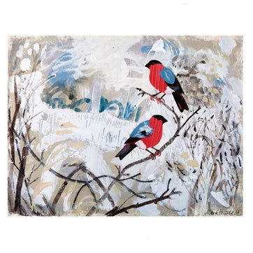 This striking Christmas card is based on the mixed media collage by Mark Hearld of a pair of Bullfinches sitting in a snowy tree. The card is blank inside, is printed on quality card, has biodegradeable packaging and comes with a grey craft envelope