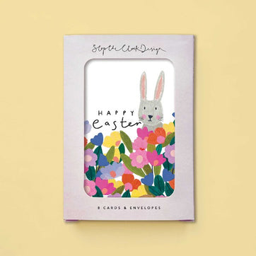 This adorable pack of eight Easter cards shows a cute little bunny amidst a colourful field of flowers - perfect for spreading some springtime joy!