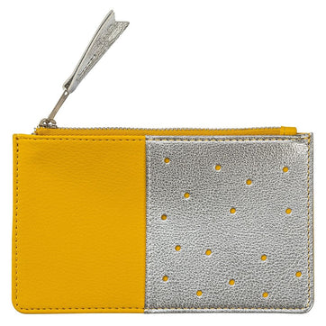This beautiful faux leather purse comes in an eye-catching yellow and silver design. With a zip closure and card pockets, it makes the perfect addition to your handbag.