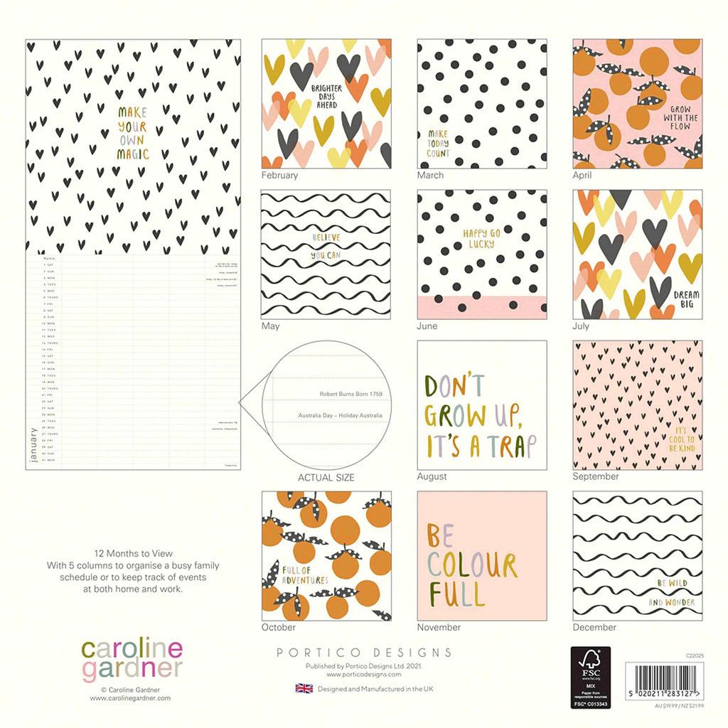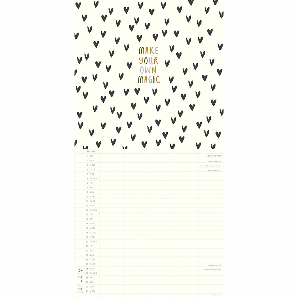 This fabulous month-to-view calendar is perfect for busy households. With 5 columns and handy stickers, this useful and pretty calendar will certainly help things run smoothly. Securely bound with staples and with a hole punched in each sheet to hang in your home.