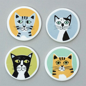 A colourful set of 4 ceramic coasters, with a foam backing, designed in the UK by Hannah Turner. These cheery and comical cats are sure to be a fun addition to any table setting.