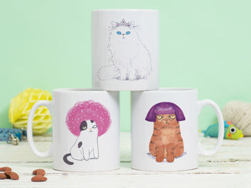This fab mug features three kitties printed in a wrap-around, all dressed up and ready for a party!