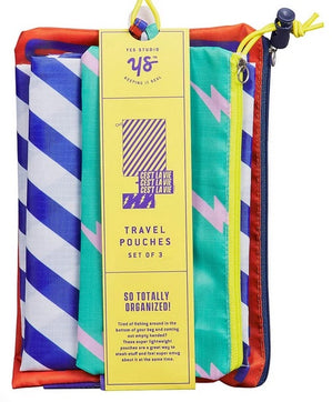 Stay on top of your travels and organised as you go with a stylish set of 3 brightly coloured travel pouches. These lightweight pouches come from small to large, with colourful prints so you won't lose them at the bottom of your suitcase.