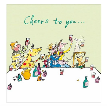"Cheers to you.." everyone around the table says, raising their glasses in unison, toasting to all the time and effort that gets placed into a job, whether it be for many years or just a few months, this card is the perfect way to send your well wishes to someone who is moving on to new things in life.
