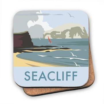 This 'Seacliff, East Lothian. By Illustrator Dave Thompson' square coaster is hard board and cork backed, with a beautiful glossy finish.