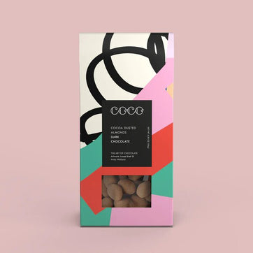 These deliciously sweet, caramelised almonds are dipped in dark chocolate and then dusted with delicate cocoa powder.