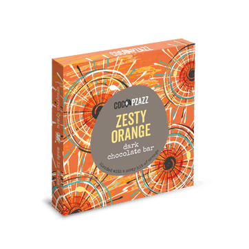 This delicious dark chocolate is blended with zesty orange flavour for that perfect hint of fruity sweetness. Coco Pzazz chocolate contains all-natural ingredients and comes in biodegradable packaging. Suitable for vegans.