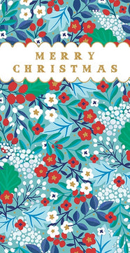 A lovely colourful money wallet to send money, tickets, tokens, or vouchers, this Christmas. This card features a colourful floral pattern with gold foiling, and comes with an envelope ready for sending.