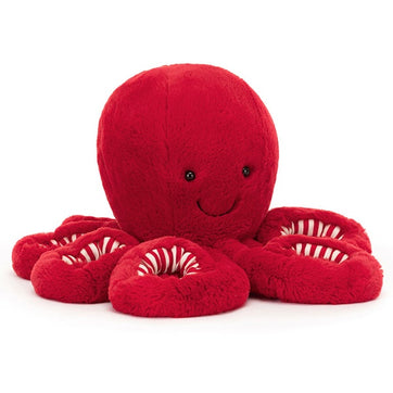 Jellycat Cranberry Octopus is an adorable cephalopod that boasts a rich red hue perfect for the festive season. Its stretchy, candy cane striped tentacles add a playful touch, making it a captivating companion for both kids and adults alike. Crafted from the softest, most luxurious materials, the Cranberry Octopus is designed to be cuddled and loved for years to come.