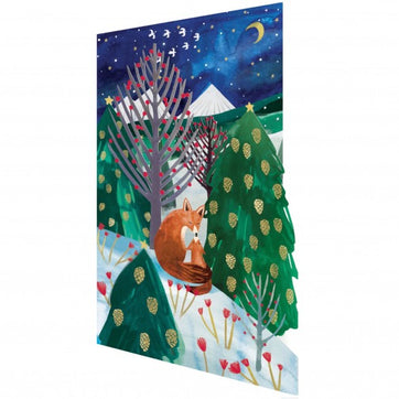 Featuring foxes and pine trees set against a wintery midnight background, this laser cut Christmas card is a stunning gift for anyone during the holiday season.