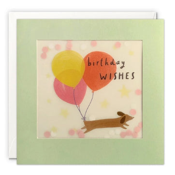 This fantastic birthday card features an adorable daschund illustration from artist Kate Mainard and is packed full of colourful confetti dots that move around when the card is shaken. As an extra bonus, this card is plastic-free and 100% recyclable!